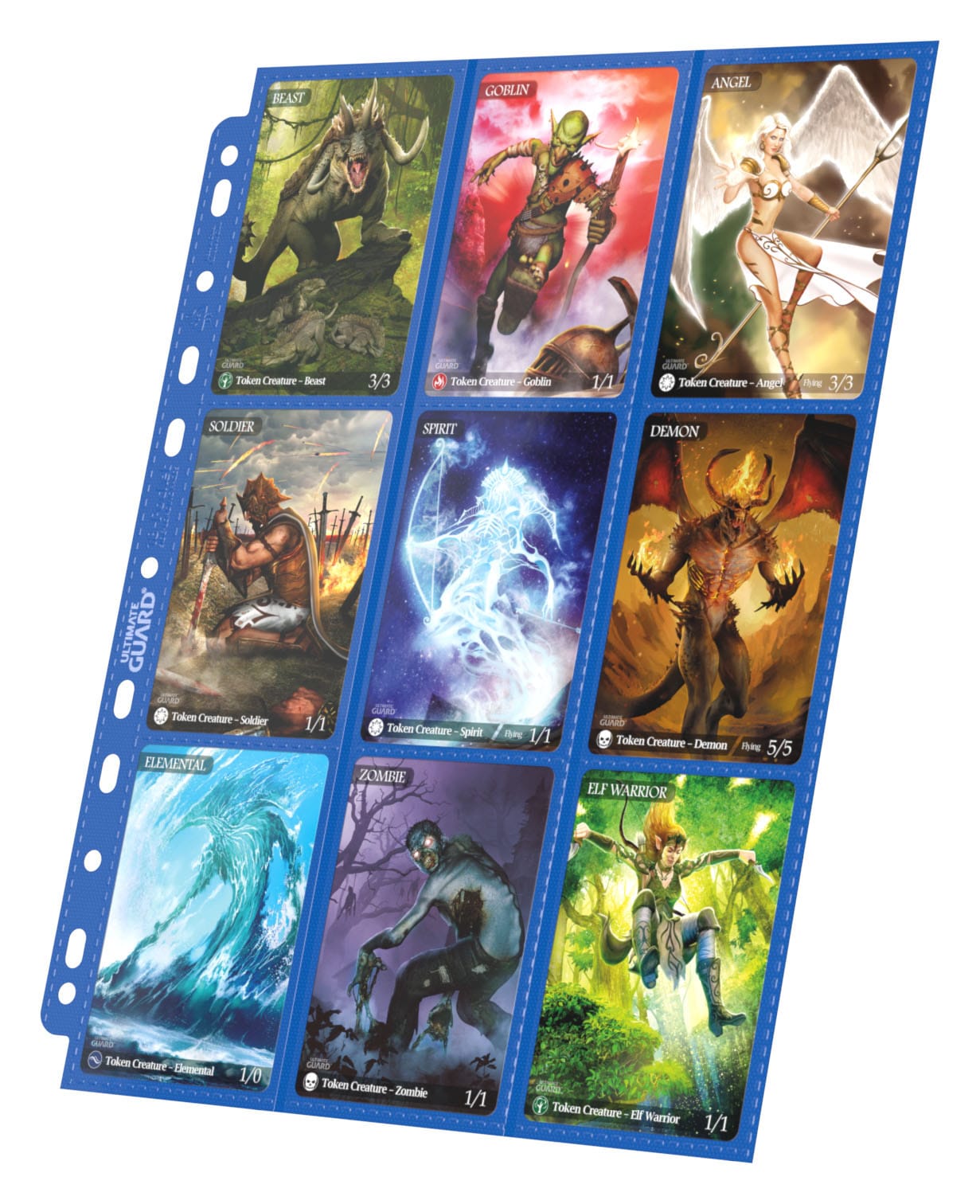 Hochwertige, doppelseitige Ordnerseiten (18 Taschen, 9 Taschen je Vorder- und Rückseite), passend für nahezu jeden Ringordner dank 11er-Lochung mit doppelt verstärkter Lochleiste. Jeder Pack enthält 10 Seiten für den Transport und die sichere Aufbewahrung von insgesamt mindestens 180 Karten (18 je Page) in zwei Hüllen (double-sleeved).