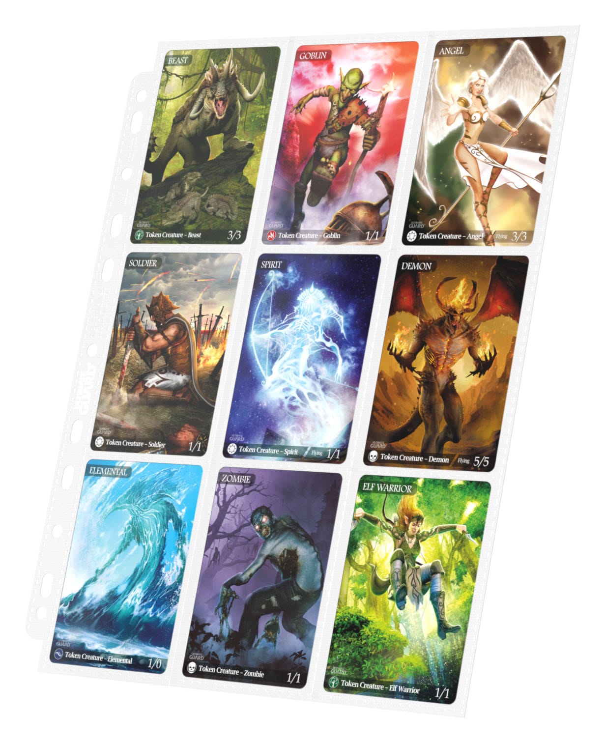Hochwertige, doppelseitige Ordnerseiten (18 Taschen, 9 Taschen je Vorder- und Rückseite), passend für nahezu jeden Ringordner dank 11er-Lochung mit doppelt verstärkter Lochleiste. Jeder Pack enthält 10 Seiten für den Transport und die sichere Aufbewahrung von insgesamt mindestens 180 Karten (18 je Page) in zwei Hüllen (double-sleeved).