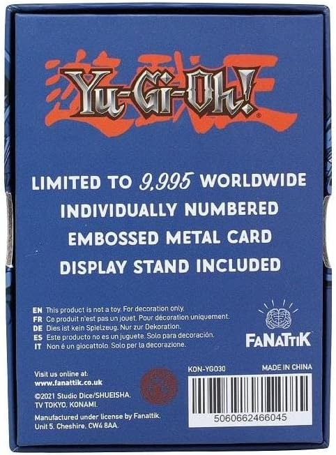 Offiziell lizenzierte Nachbildung einer Karte aus "Yu-Gi-Oh!". Das aus Metall hergestellte Sammlerstück ist 7,5 x 5 cm groß und wird in einer schicken Box geliefert.
