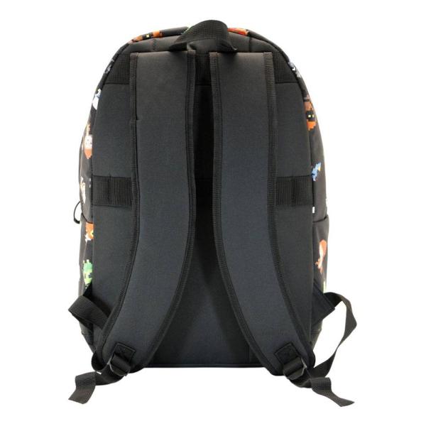 Rucksack mit drei Hauptfächern und zwei Netzseitentaschen. Innenfutter mit gepolstertem Fach für elektronische Geräte und kleiner Reißverschlusstasche. Flüssigkeitsabweisendes Gehäuse, das leichten Flecken und mäßigem Regen standhält.