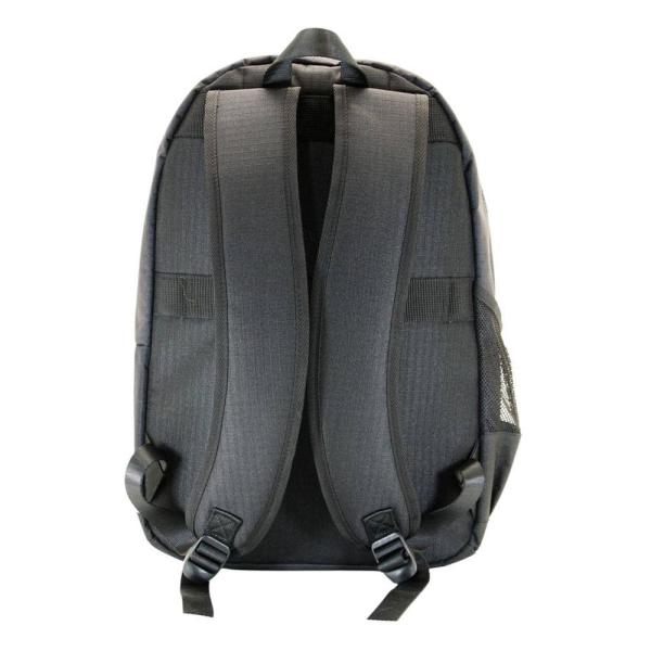 Rucksack mit drei Hauptfächern und zwei Netzseitentaschen. Innenfutter mit gepolstertem Fach für elektronische Geräte und kleiner Reißverschlusstasche. Flüssigkeitsabweisendes Gehäuse, das leichten Flecken und mäßigem Regen standhält.