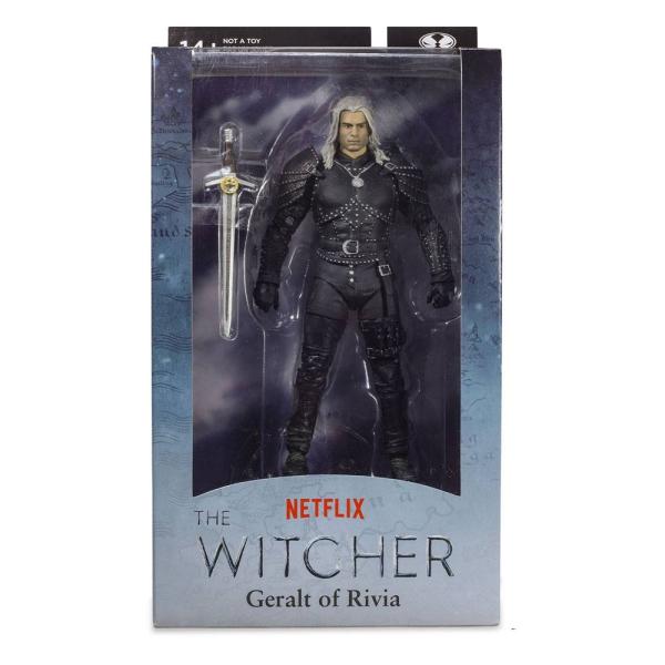 Zur Netflix-Serie "The Witcher" kommt diese detailreiche, bewegliche Actionfigur. Sie ist ca. 18 cm groß und wird mit weiterem Zubehör und Base in einer bedruckten Fensterbox geliefert.