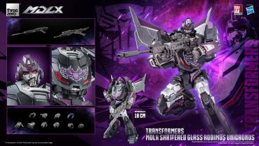 Zum Transformers Universum kommt diese fantastische Actionfigur aus ThreeA's MDLX-Reihe. Sie ist ca. 18 cm groß und wird mit weiterem Zubehör in einer Fensterbox geliefert.