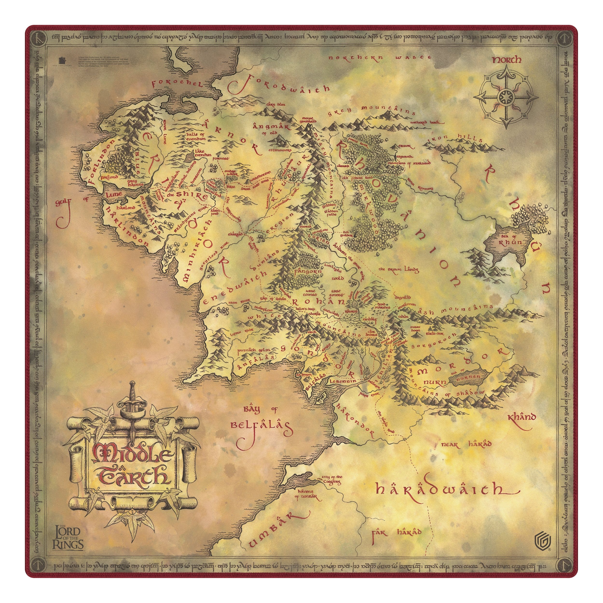 Die Zwei-Spieler-Play-Mat Oversized 61 x 61 cm der offiziellen The Lord of the Rings™ "Places of Middle-earth"-Edition von Ultimate Guard schützt Karten und Hüllen während des Spiels und verbessert das Spielerlebnis dank der rutschfesten Unterseite, während die genähten Ränder für eine noch längere Lebensdauer sorgen.